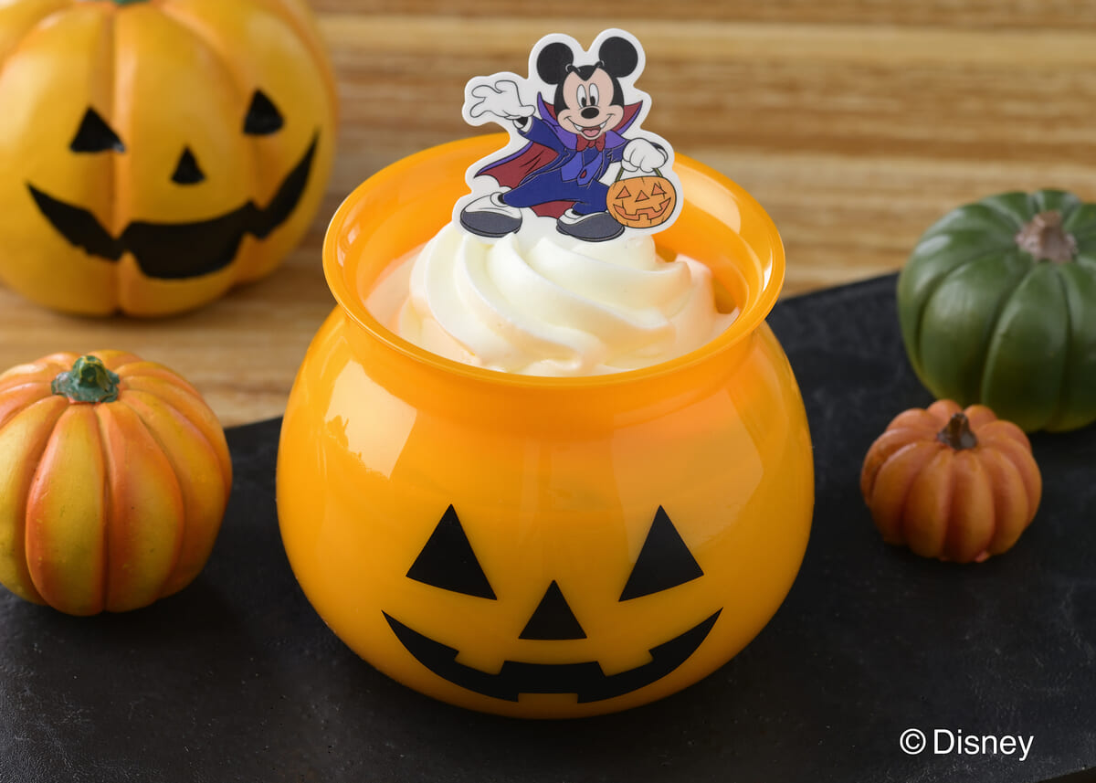 「<ミッキーマウス>パンプキンプリン」は、ジャック・オ・ランタンがモチーフの器に入った、ハロウィン限定プリン。