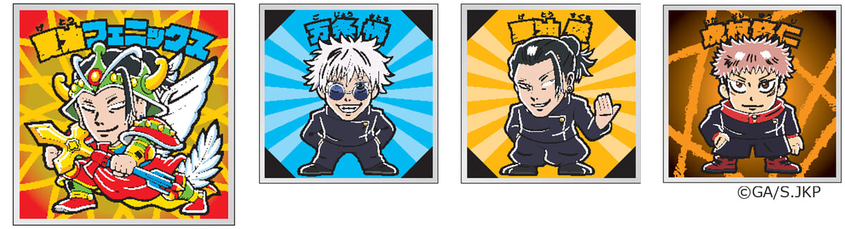 ビックリマンイラストレーターが全て新たに描き起こした「五条悟」や「夏油傑」「虎杖悠仁」たちのシールがランダムで1枚入っています☆