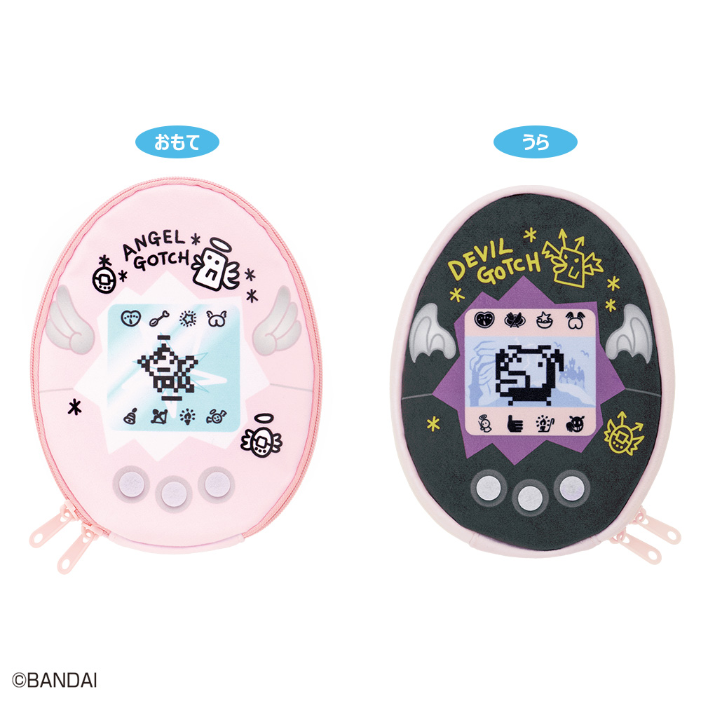 C賞に展開される『てんしっちのたまごっち』と『デビルっちのたまごっち』柄が表裏にプリントされた「たまごっち」型のポーチ。