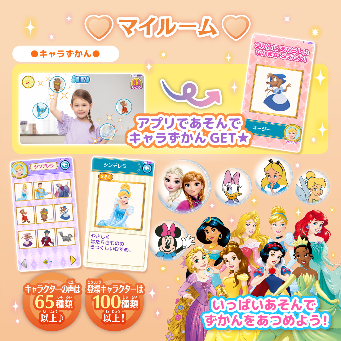アプリであそぶとディズニーキャラクターのキャラずかんがもらえます。