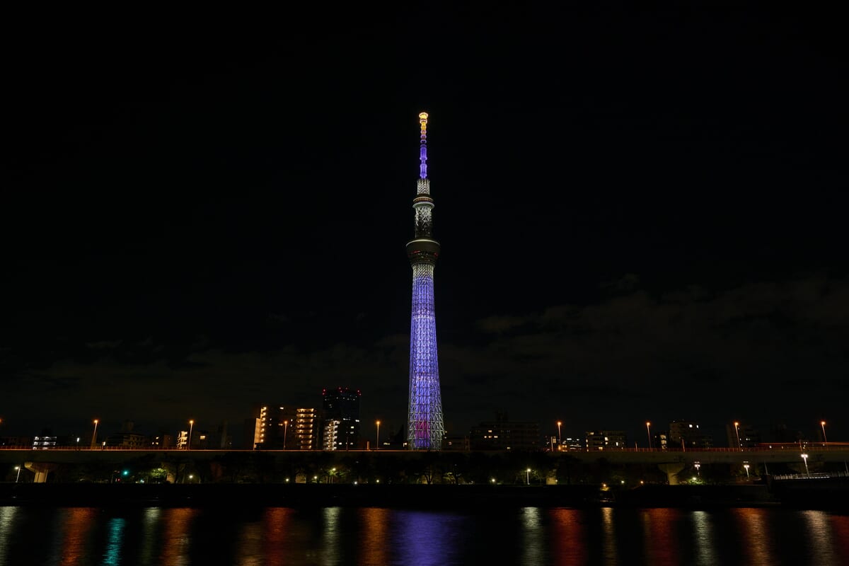 アーシャのイメージカラーでライトアップ!東京スカイツリー ディズニー100周年記念作品『ウィッシュ』特別ライティング