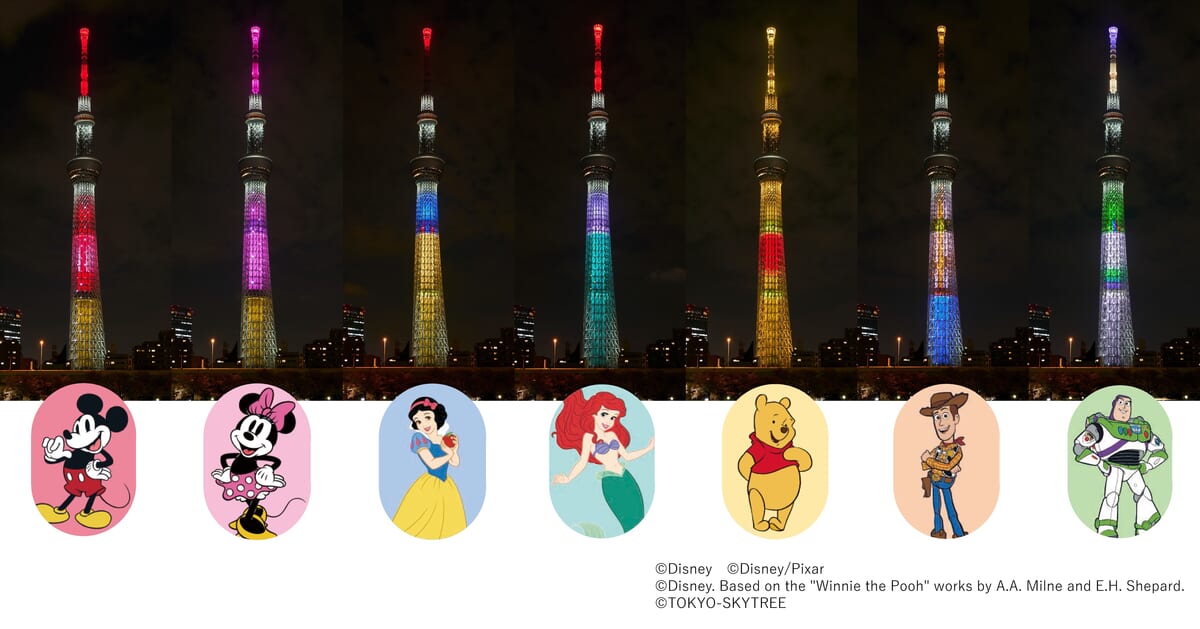 10月16日当日限定!ディズニーの人気キャラクターのカラーに輝く東京スカイツリー(R)ライティング
