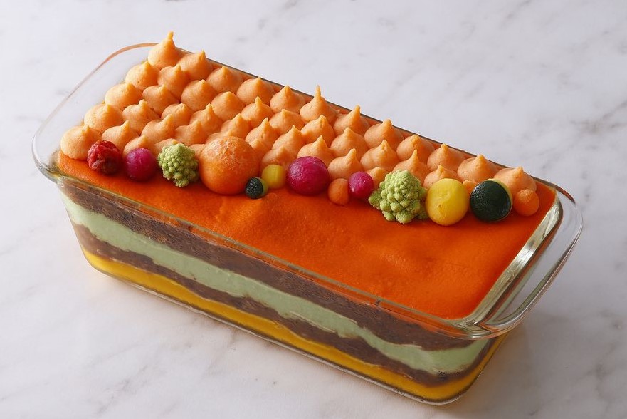 コースを締めくくるデザートは、かわいらしいプレゼントボックスを模ったバニラとナッツ、もみの木のリキュールを合わせたムースが登場。