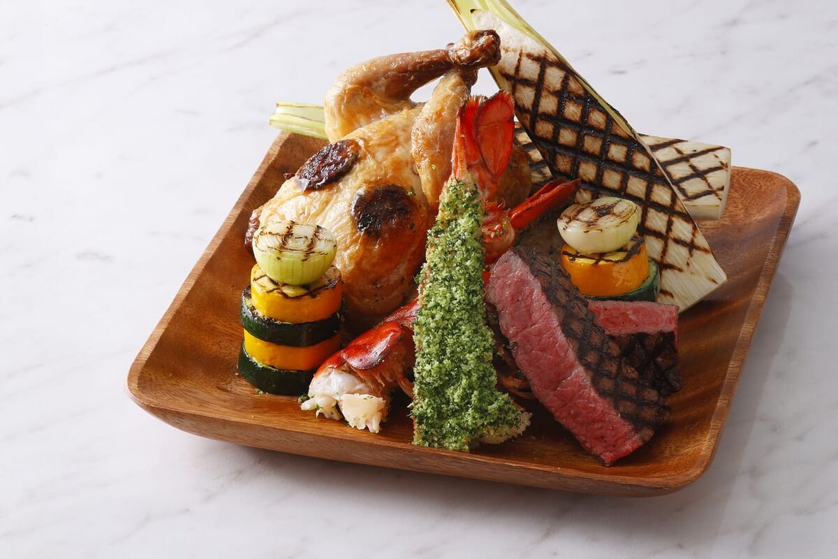 黒毛和牛のローストビーフに、オマール海老の香草パン粉焼きと、ジューシーに焼き上げたローストチキンも味わえる「クリスマス グリル コンボ」