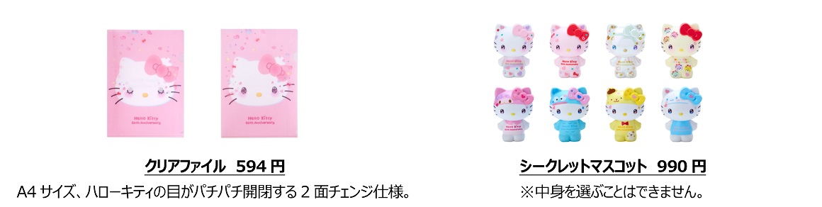未来を見つめる「ハローキティ」をデザインした「ハローキティ50周年 The Future in Our Eyes」シリーズが販売されるほか、全国24店舗のサンリオショップとサンリオオンラインショップ本店に「ハローキティ50thアニバーサリーショップ」もオープン。