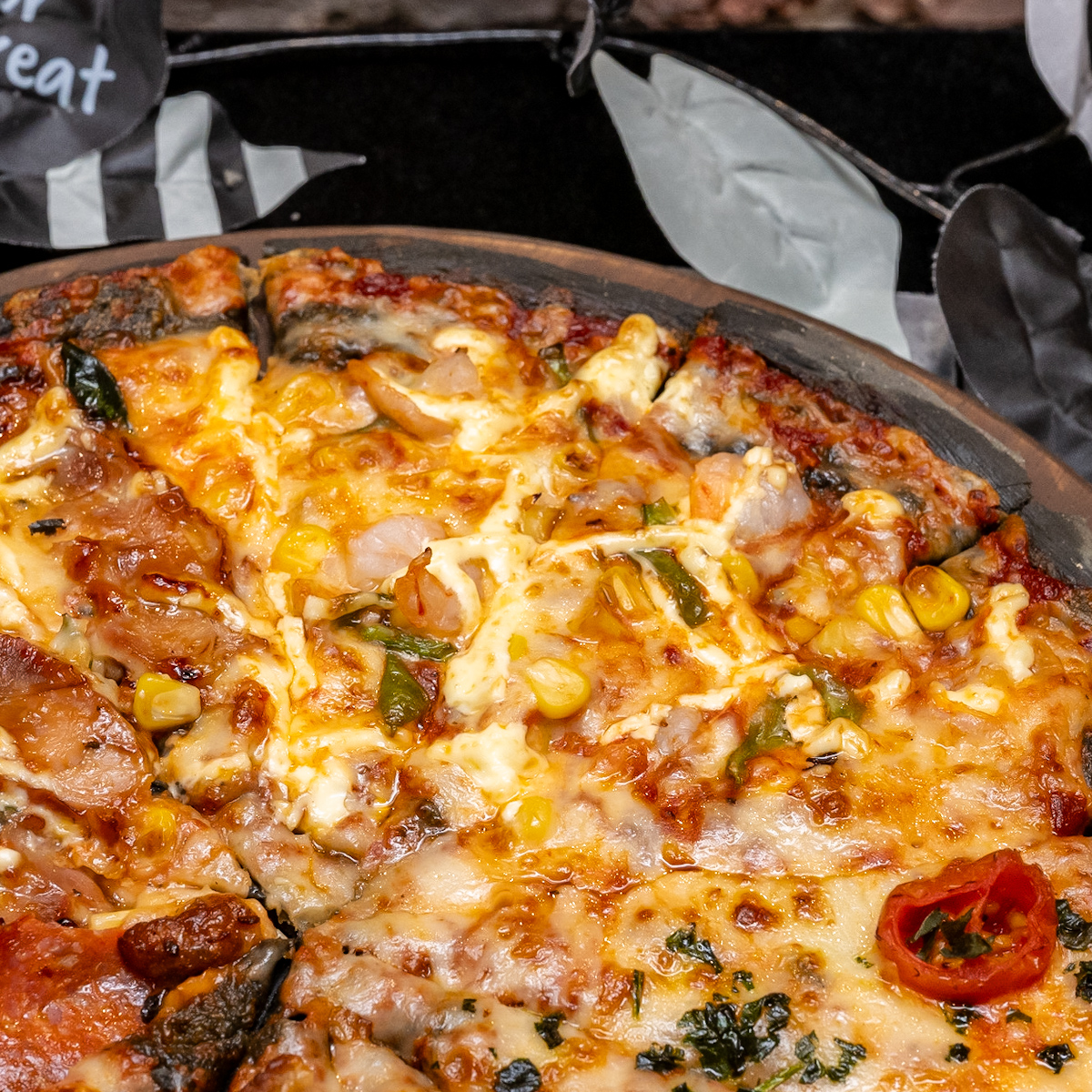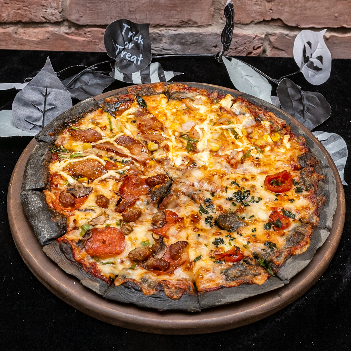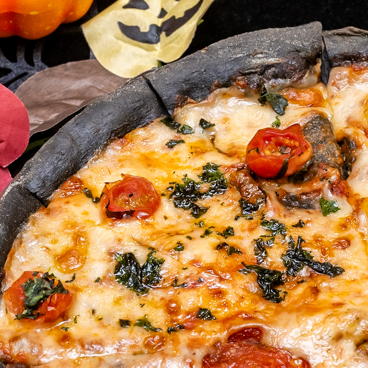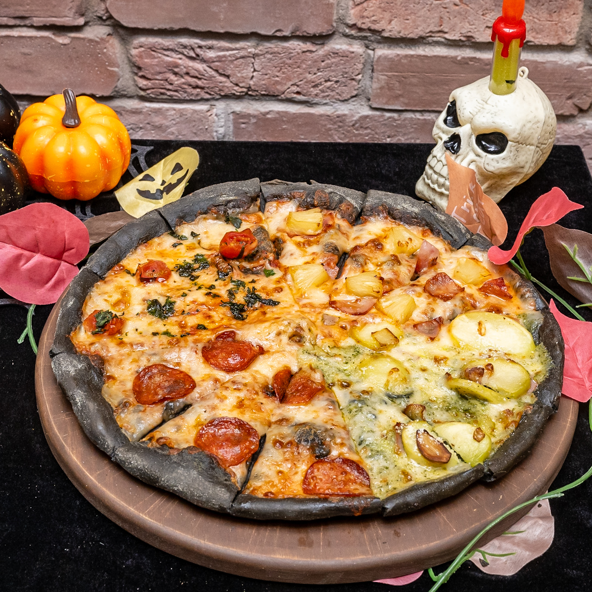 ハロウィン限定のデビルズクラスト生地と共に堪能できます。