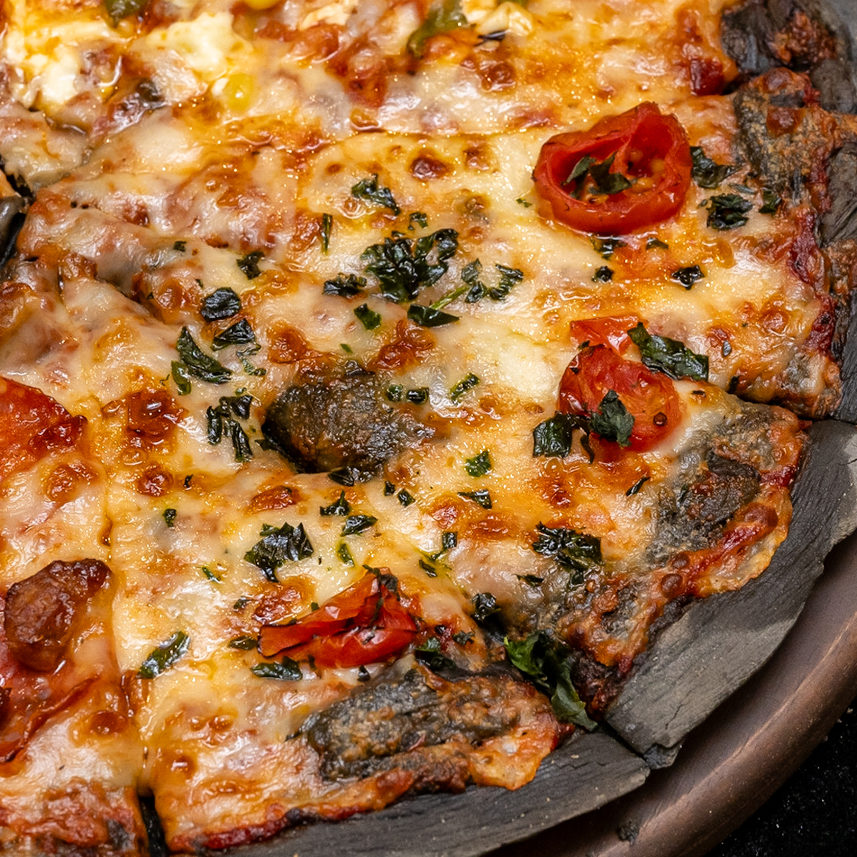 ドミノ・ピザで人気の定番生地「ハンドトス」の特有の風味とふわもち食感をそのままに、竹炭を混ぜ込むことで、ハロウィンを盛り上げる真っ黒な生地を実現。