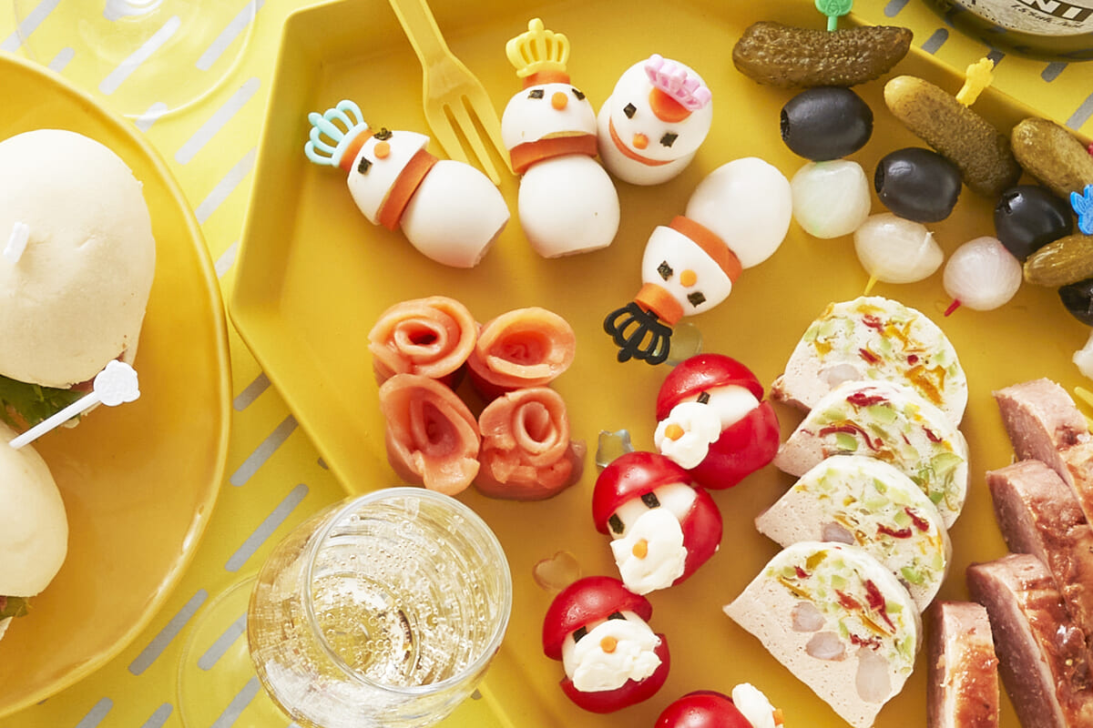 うずら卵が雪だるまに、トマトとチーズがサンタクロースに!