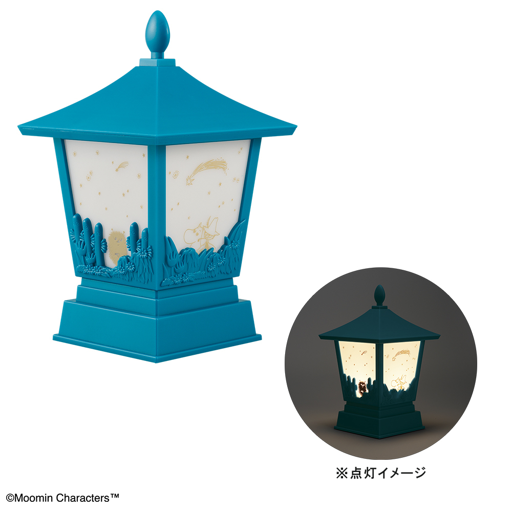 望遠鏡を持って、ごろんと寝ころんでいる「ムーミン」のぬいぐるみやランタンライトなどが展開されます。