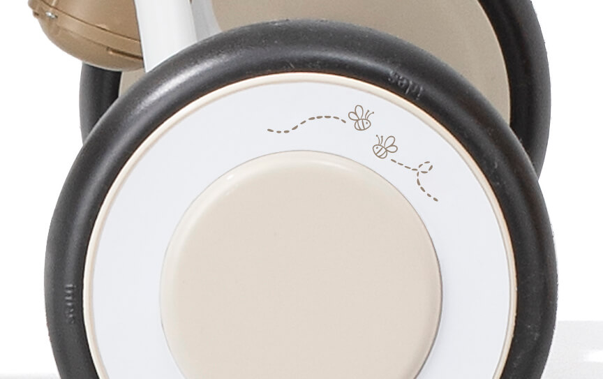 みつばちのイラストはタイヤのところにも描かれていて、三輪車が進むとくるくる回ります!