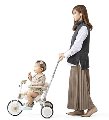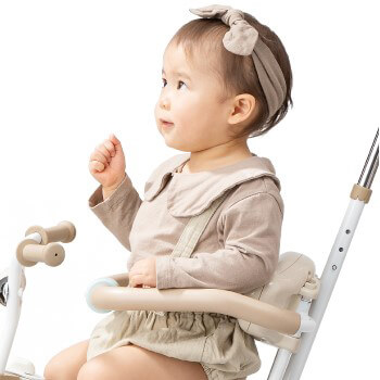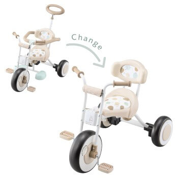 パーツを取り外すとシンプルな三輪車に変えられ、4歳まで楽しめます!