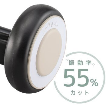 タイヤは発泡タイヤを使い、発泡材質でないものと比べると振動率を55%カットして快適。