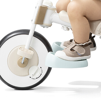また、お散歩バーを使うときはペダルを空回りさせる機能があり、子どもの足を乗せられる足乗せステップ付き。