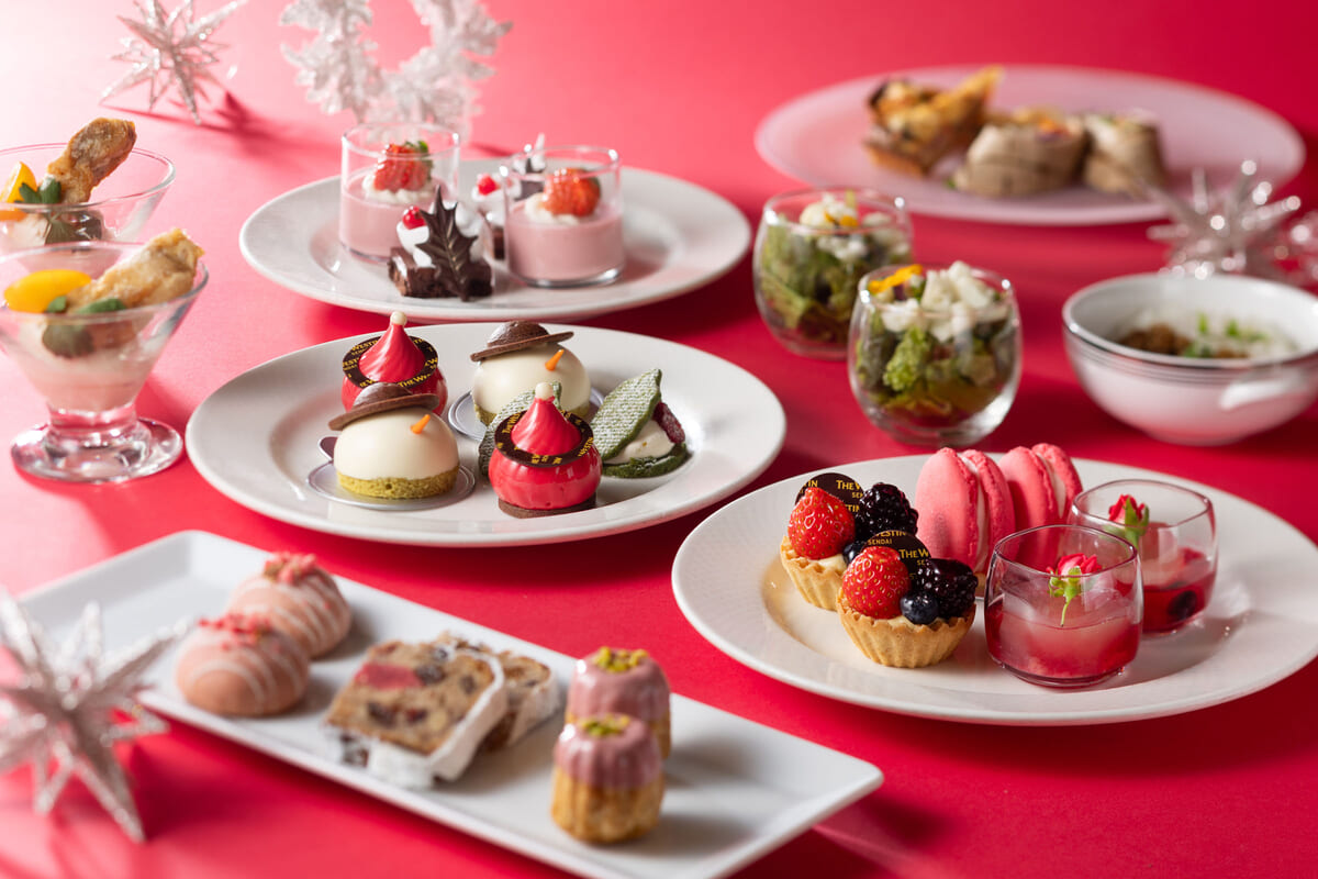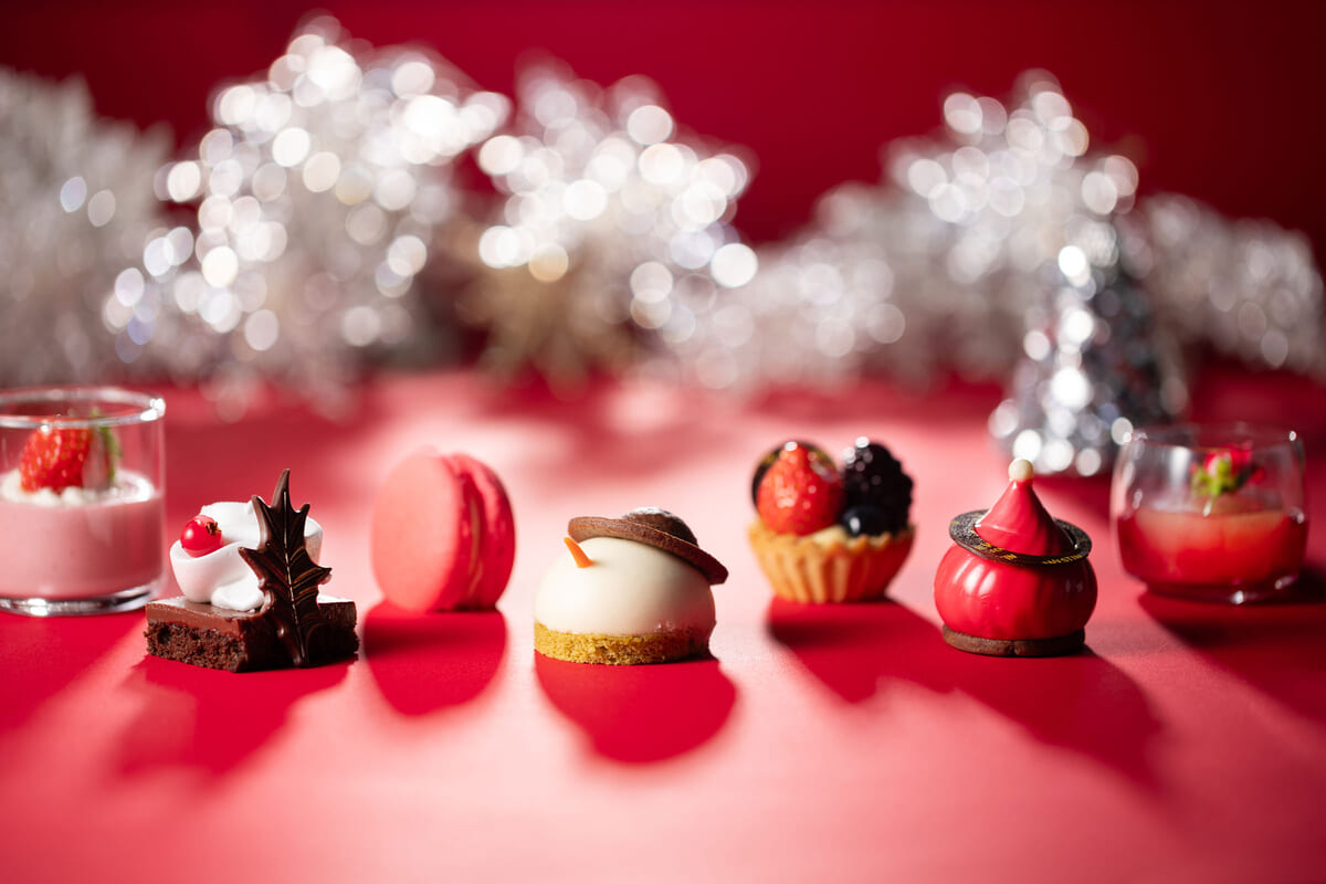 スノーマンに見立てたなめらかなホワイトチョコレートのムースや、キャンドルをモチーフにした上品ないちごのブランマンジェ、クリスマスリースをイメージした甘い香りのベリーのタルトが提供されます。