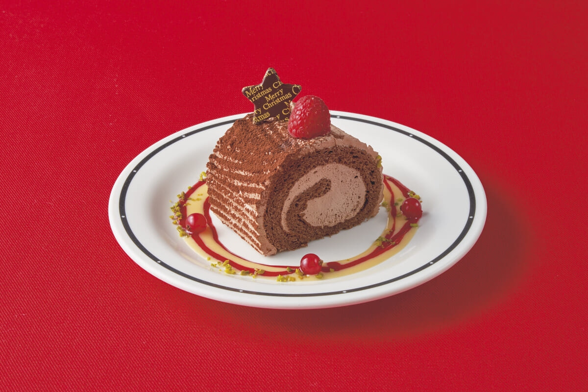 スターのチョコとイチゴのトッピングがポップな「ブッシュ・ド・ノエル」