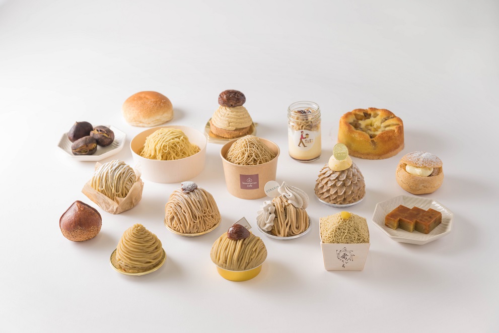 マロンスイーツの定番「モンブラン」は、各店のこだわりが詰まった⾒た⽬も味わいも異なる10種類をラインナップ。