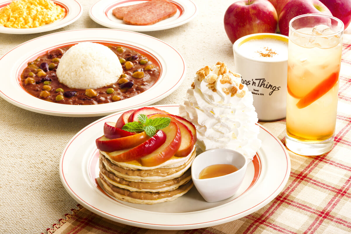 リンゴを使った秋限定のパンケーキやハワイならではのメニュー、定番ドリンクが期間限定で登場。