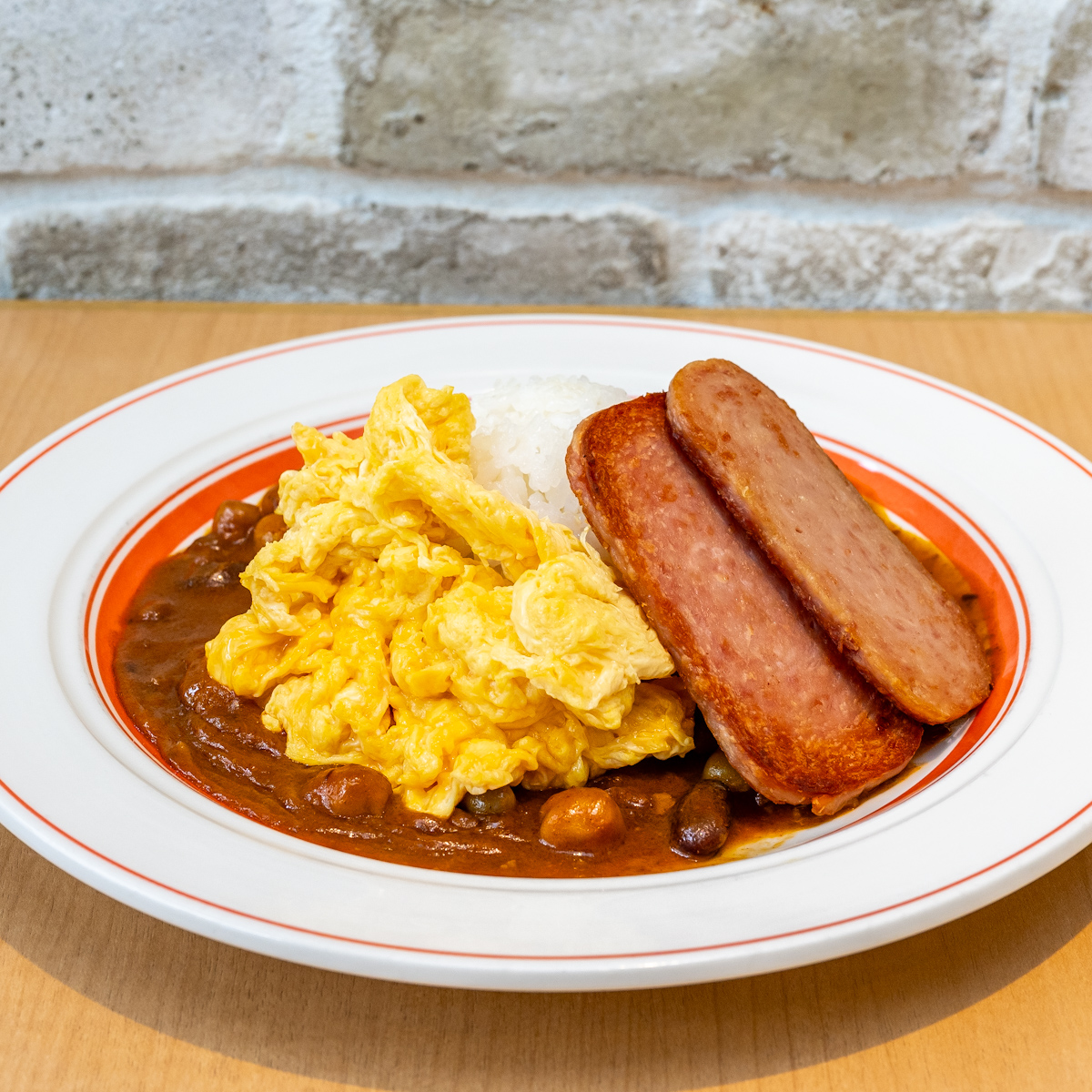 スパム(2枚)、ソーセージ(2本)、目玉焼き(2個分)、スクランブルエッグ(2個分)からチョイスできます。