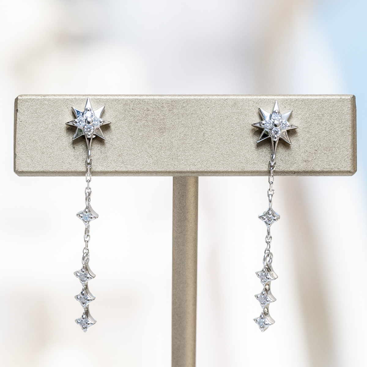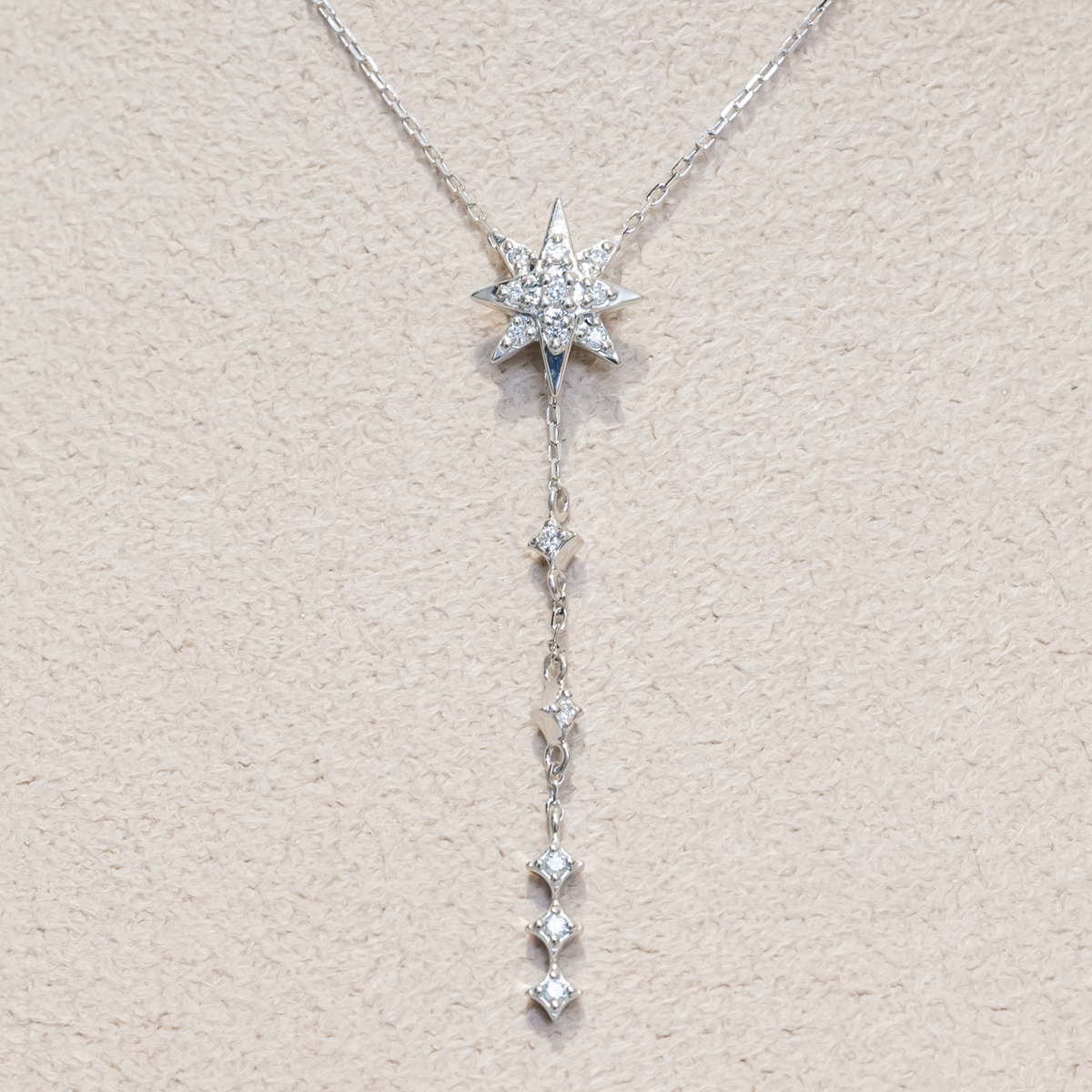 華奢なチェーンに、輝くダイヤモンドがゆらめく華やかなジュエリーです。