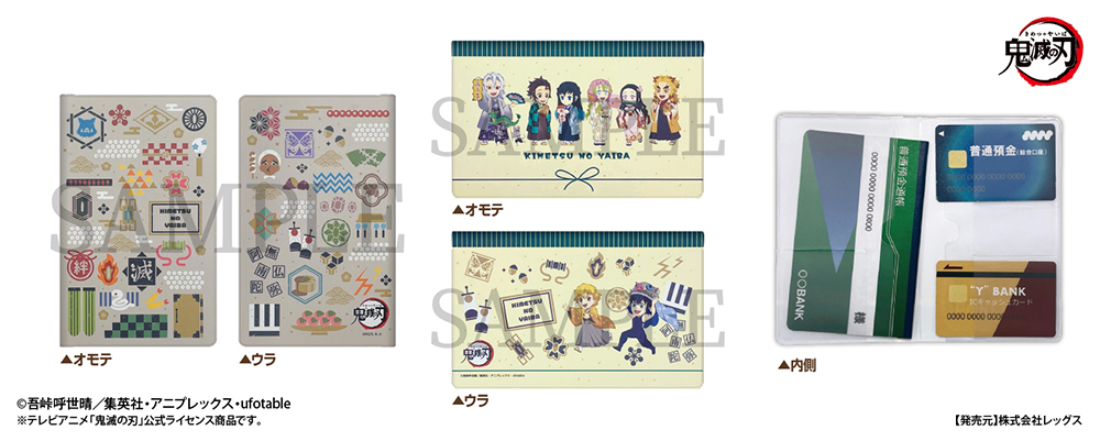 「通帳ケースA」は、「竈門炭治郎」たちのモチーフや好物のアイコンを散りばめた縦型のデザイン。