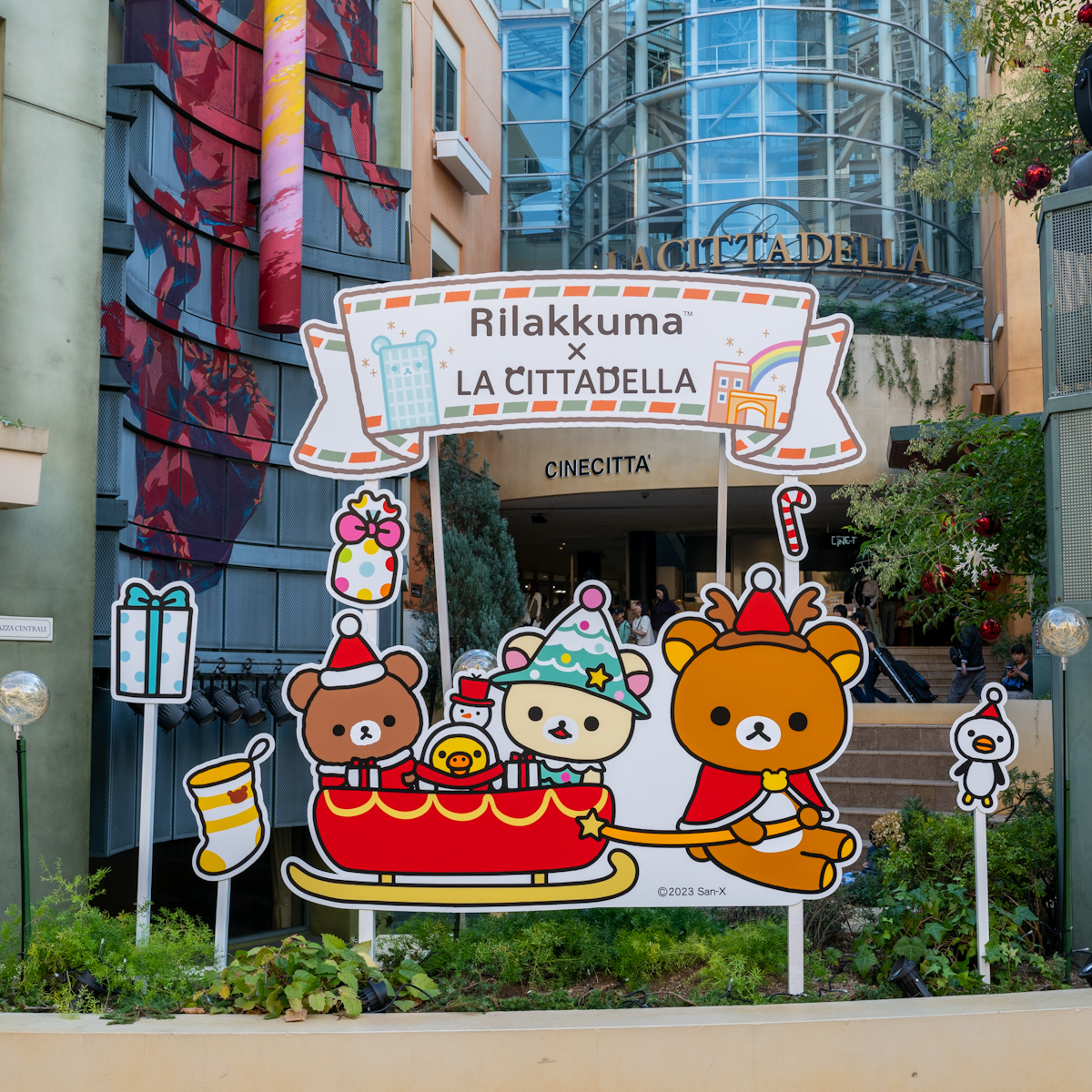 イタリアをテーマとする「ラ チッタデッラ」の建築デザインを活かし、中央噴水広場をはじめ、小路、ビバーチェ棟など館内各所にフォトジェニックな「リラックマ」のクリスマス・フォトスポットが設置されます。