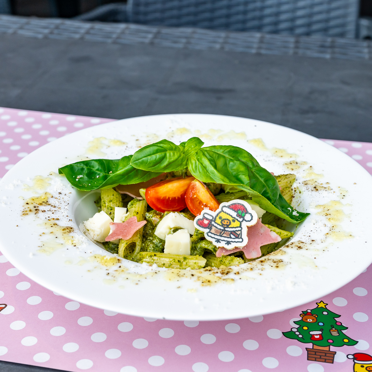 グランピングが体験できるバーベキュー施設「CIELO GRANDE & 黄金のキッチン」に併設されたレストランに登場する「クリスマスジェノベーゼパスタ」