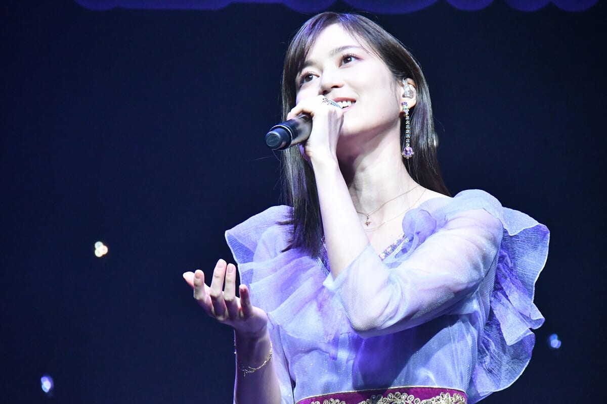 映画の世界観を表現した幻想的なステージに、新ヒロイン・アーシャを思わせる優しいラベンダーカラーのドレスに身を包んで登場した生田絵梨花さん。