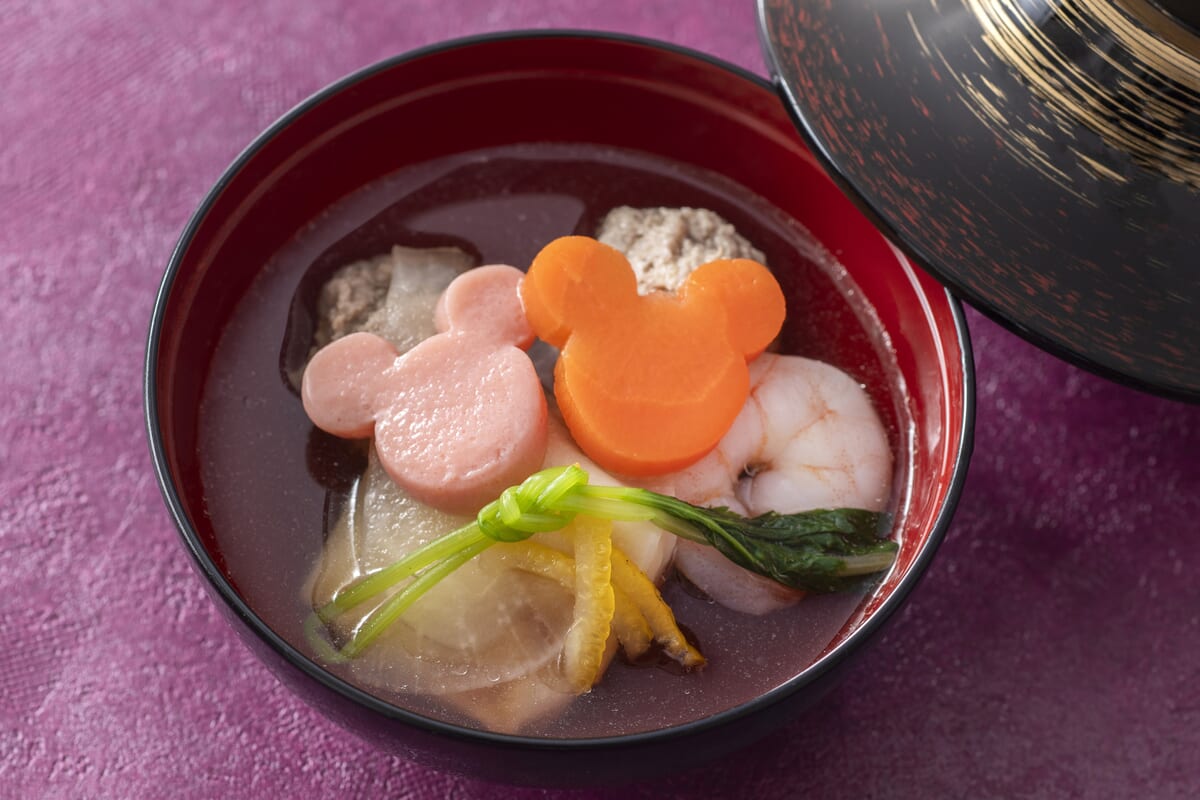 東京ディズニーシーの「レストラン櫻」では焼餅、合鴨つみれ等8つの具材を使用した雑煮椀に変更することができます。