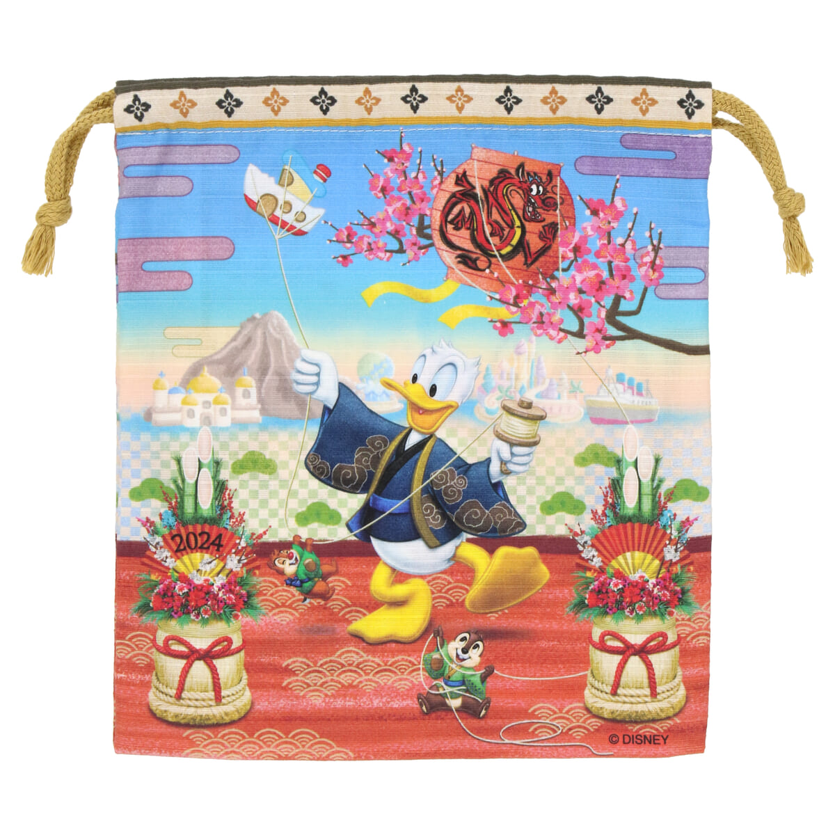和装姿の「ミッキーマウス」と「ミニーマウス」がデザインされたきんちゃく。