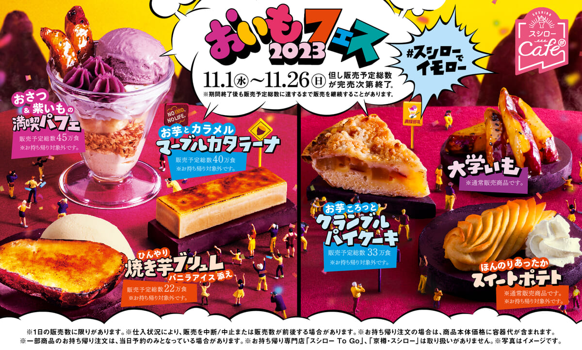 回転寿司チェーン「スシロー」の“スシローカフェ部”では、秋の味覚の芋を存分に楽しめる「おいもフェス2023」を開催!