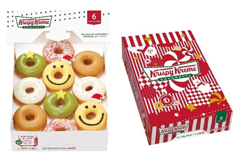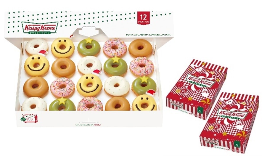 「ストロベリー カスタード サンタ」「キャラメル トナカイ」「ピスタチオ クリーム リース」「チョコレート スノーマン」「ホリデー ストロベリー リング」と、人気のオリジナル・グレーズドも一緒の12個入りです。