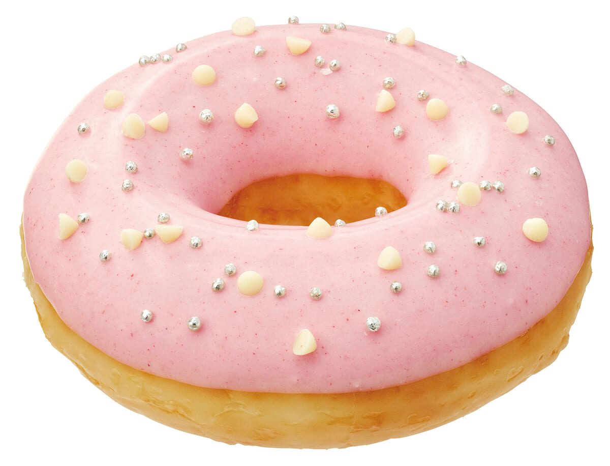 ふわふわの「オリジナル・グレーズド」に甘酸っぱいストロベリーチョコをコーティングした「ストロベリーリング」