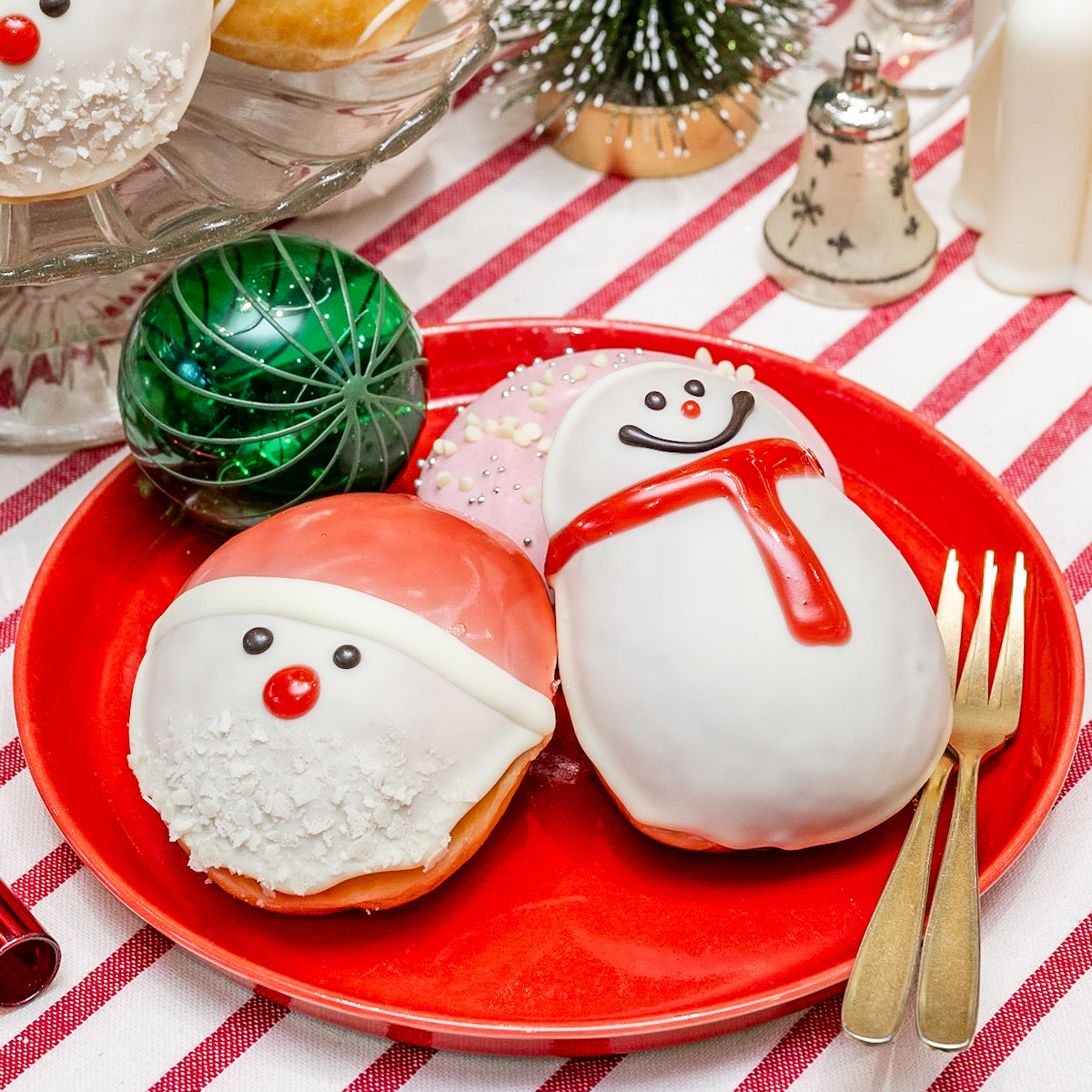 「ホリデー プレート」にドーナツを並べて、クリスマスパーティーを楽しめます。