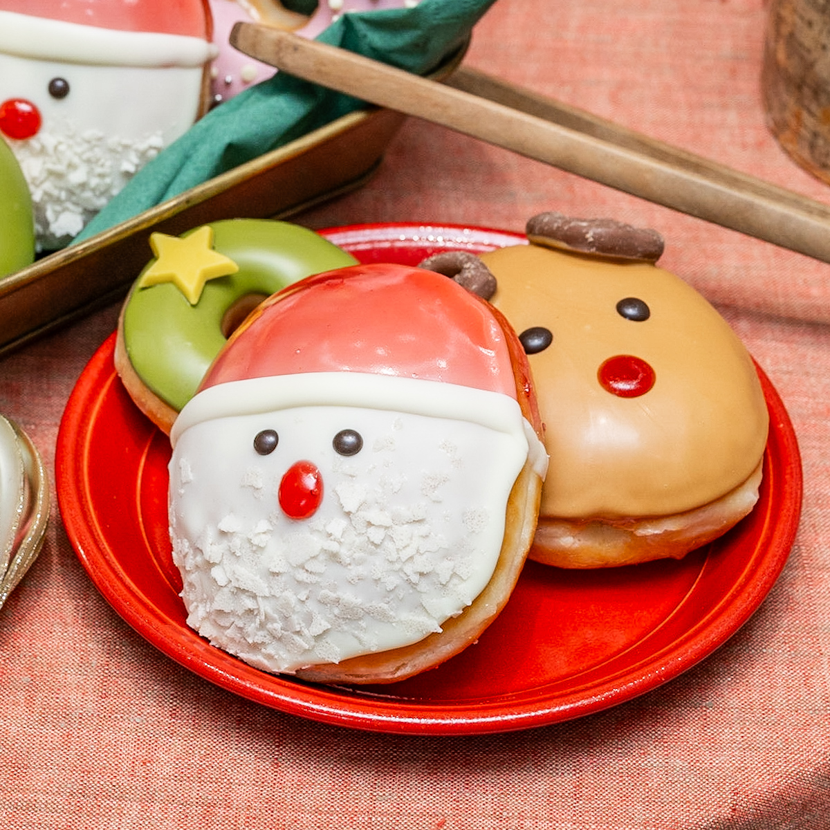 サンタ、トナカイ、スノーマンなどクリスマスのかわいい主役たちをモチーフにした、ホリデーシーズン限定のドーナツ。