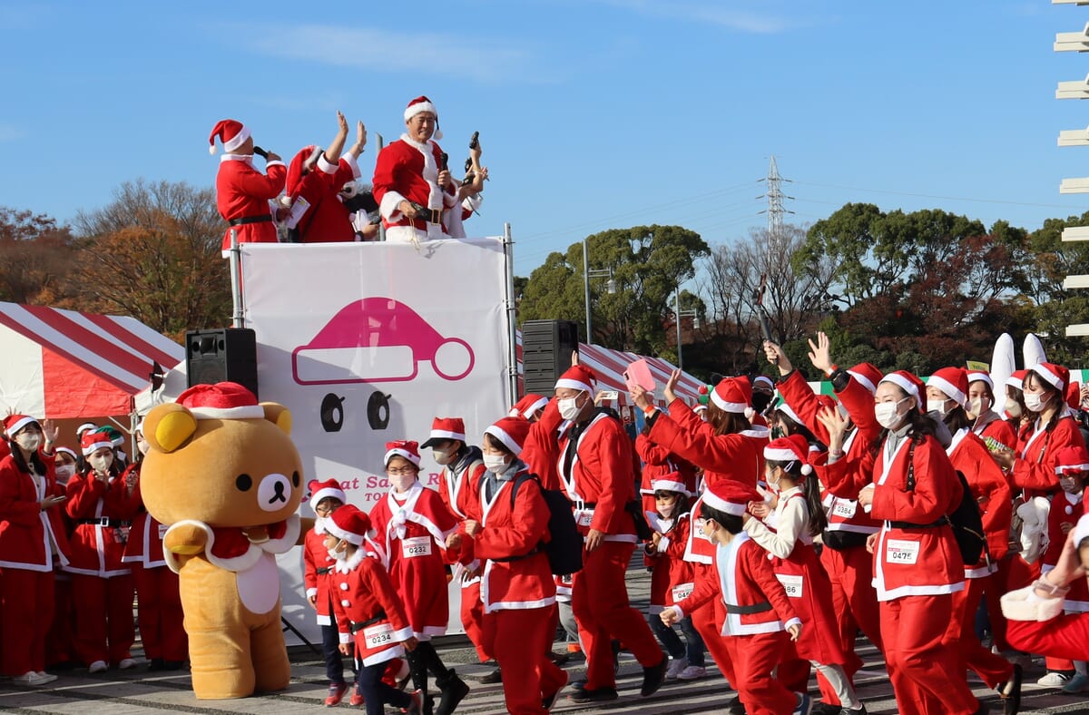 サンタクロースの衣装を着て、楽しくランニングやウォーキングをすることで、その参加費を活用して病気とたたかう子どもたちにクリスマスプレゼントが贈られます。