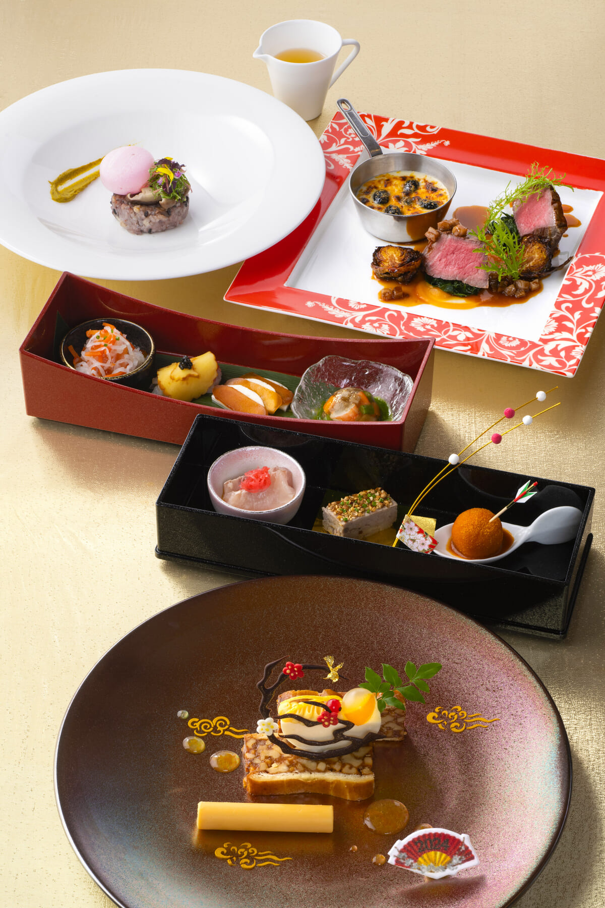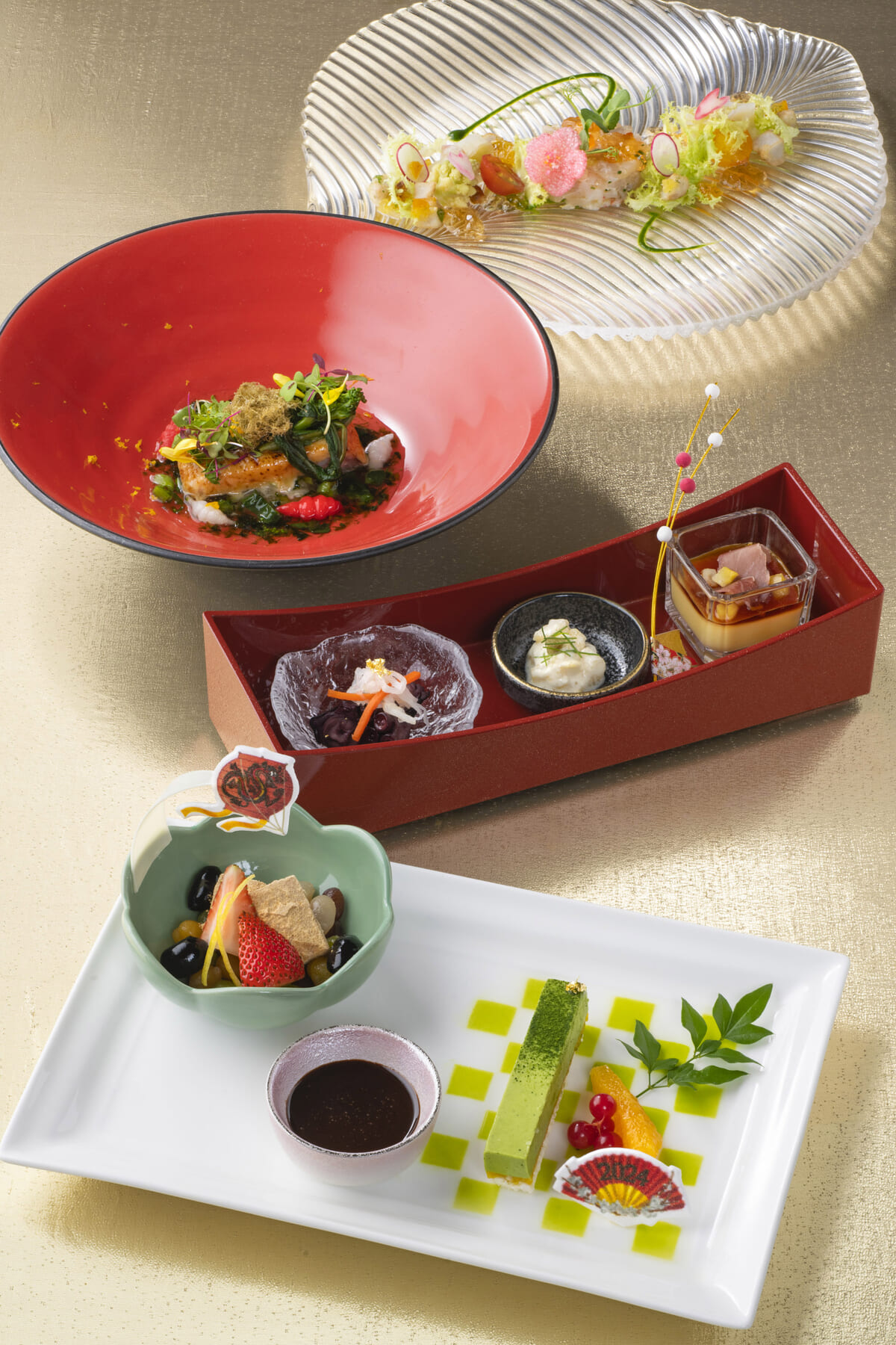 「数の子と湯葉の白和え」や「生ハムと栗きんとんの冷製ロワイヤル」など新年にぴったりのメニューが揃う内容です。