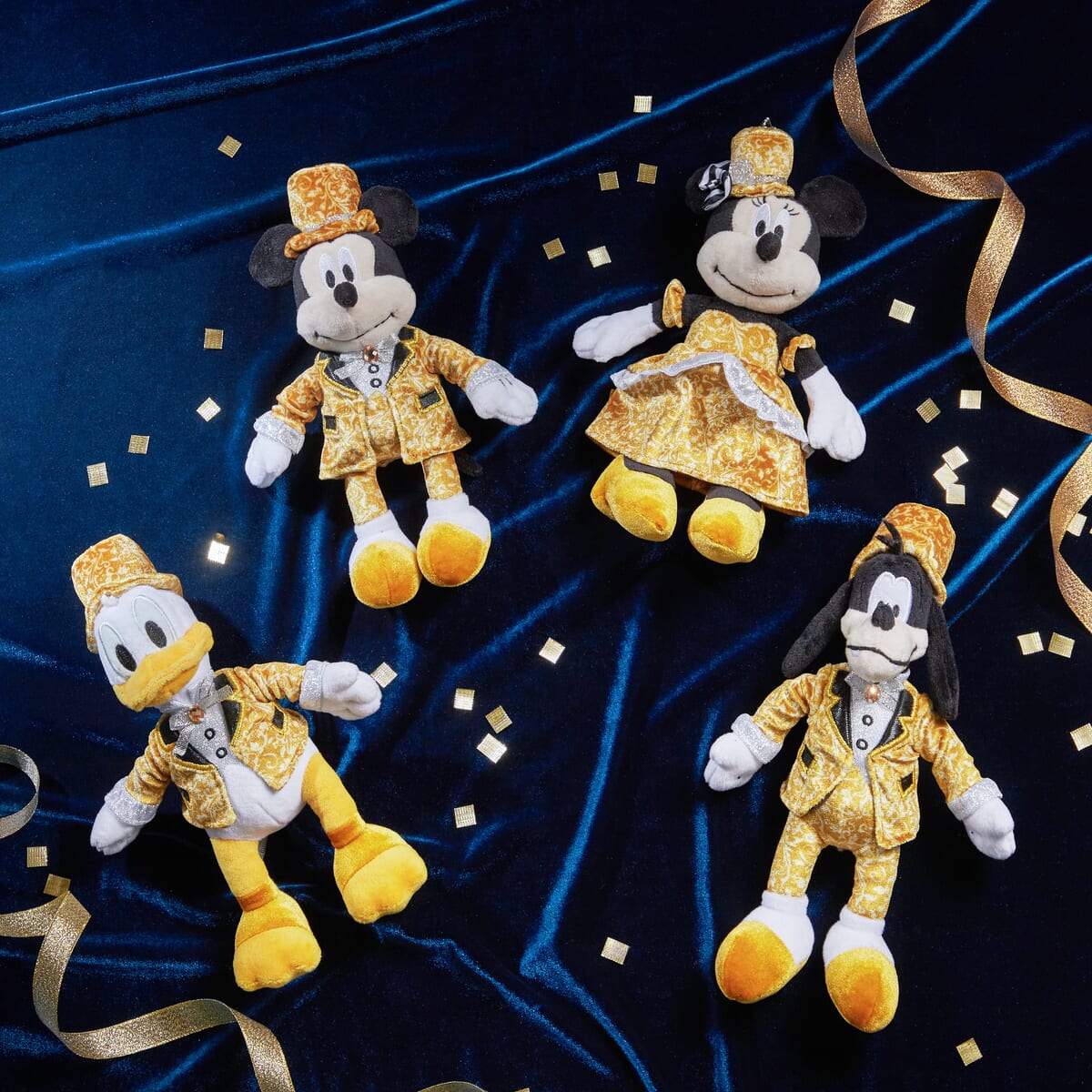 ミュージカルのステージ衣装風のきらびやかなコスチュームに身を纏った「ミッキー&フレンズ」がデザインされています。
