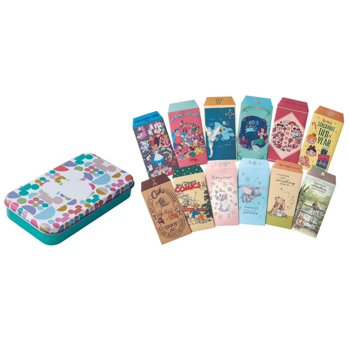 11月10日からの第1弾では、『リトル・マーメイド』や『くまのプーさん』など全12柄各2枚をセットにした「ポチ袋缶」、