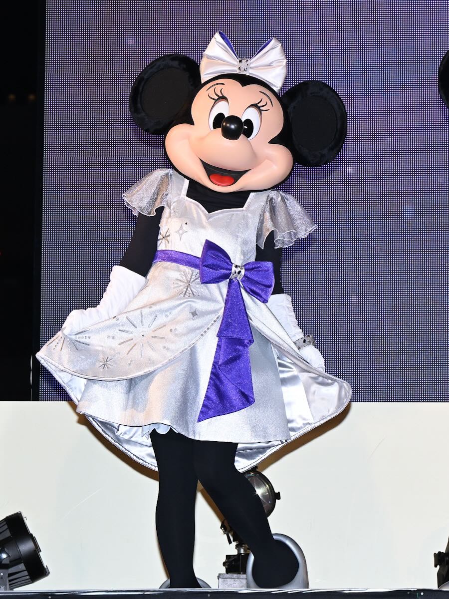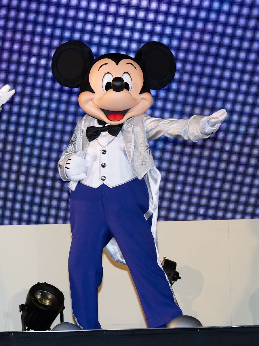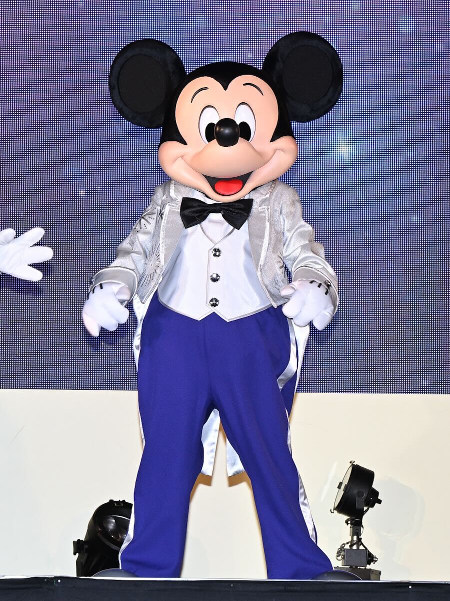 100周年のプラチナコスチュームを身にまとった「ミッキーマウス」と、