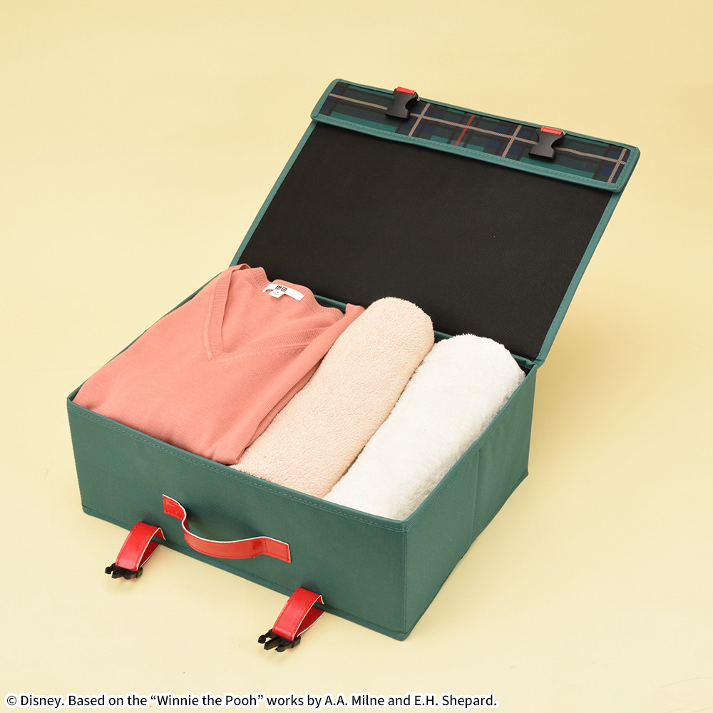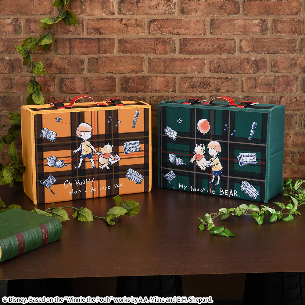 「くまのプーさん」と「クリストファー・ロビン」のアートがかわいい、トランク型の収納ボックス。