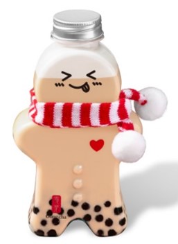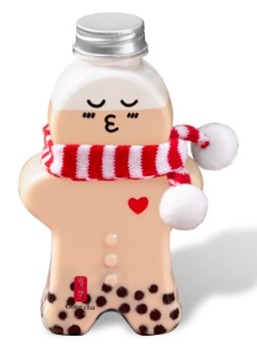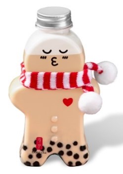 ホリデー気分を盛り上げる“ジンジャーブレッドマン”デザインの、ミルクティー入り限定ボトル。