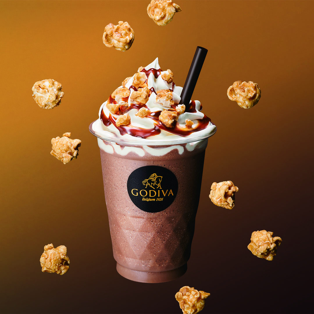 ゴディバが販売するチョコレートドリンク「ショコリキサー」から、新フレーバー「キャラメルポップコーン ショコリキサー」が期間限定で登場!