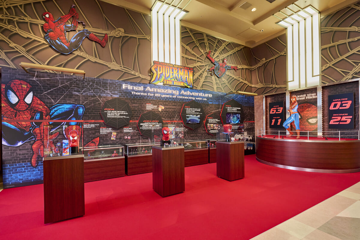 『アメージング・アドベンチャー・ オブ・スパイダーマン・ザ・ライド』クローズまでの期間中、アトラクションの歴史を振り返る特大パネルや、過去に放送されていたTVCM動画、ファン垂涎の歴代人気グッズも展示されます☆
