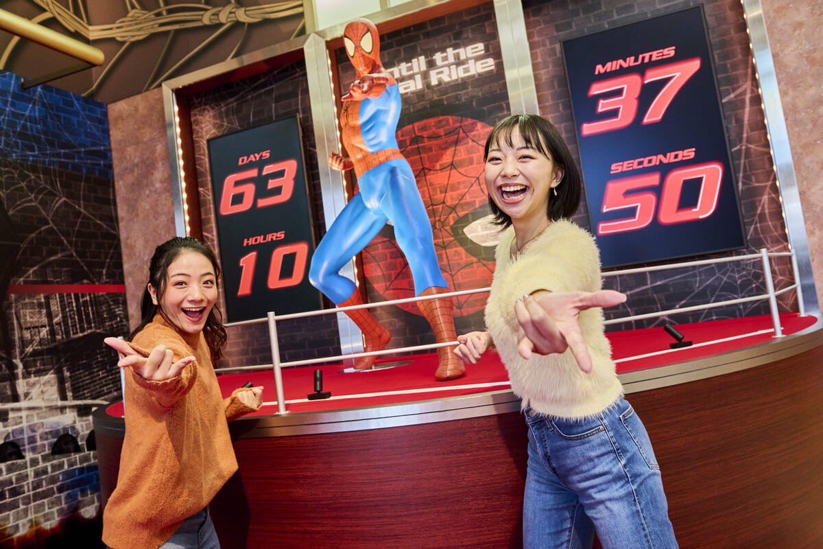 ファイナルまで残り50日となる2023年12月3日(日)から、「スパイダーマン・ザ・ライド」のクルーが、スペシャルフラッグを手にゲストをお出迎えします。