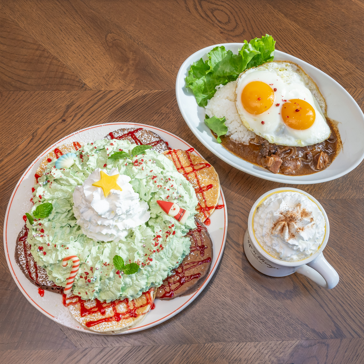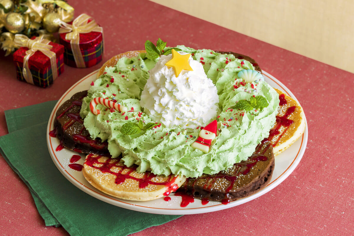 クリスマスを華やかに彩るパンケーキやビーフシチュー、季節限定ドリンク。