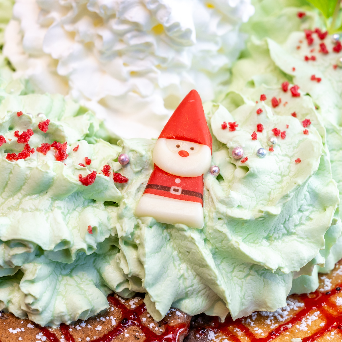 香り高いピスタチオホイップクリームでクリスマスリースをイメージした「クリスマスリースパンケーキ」