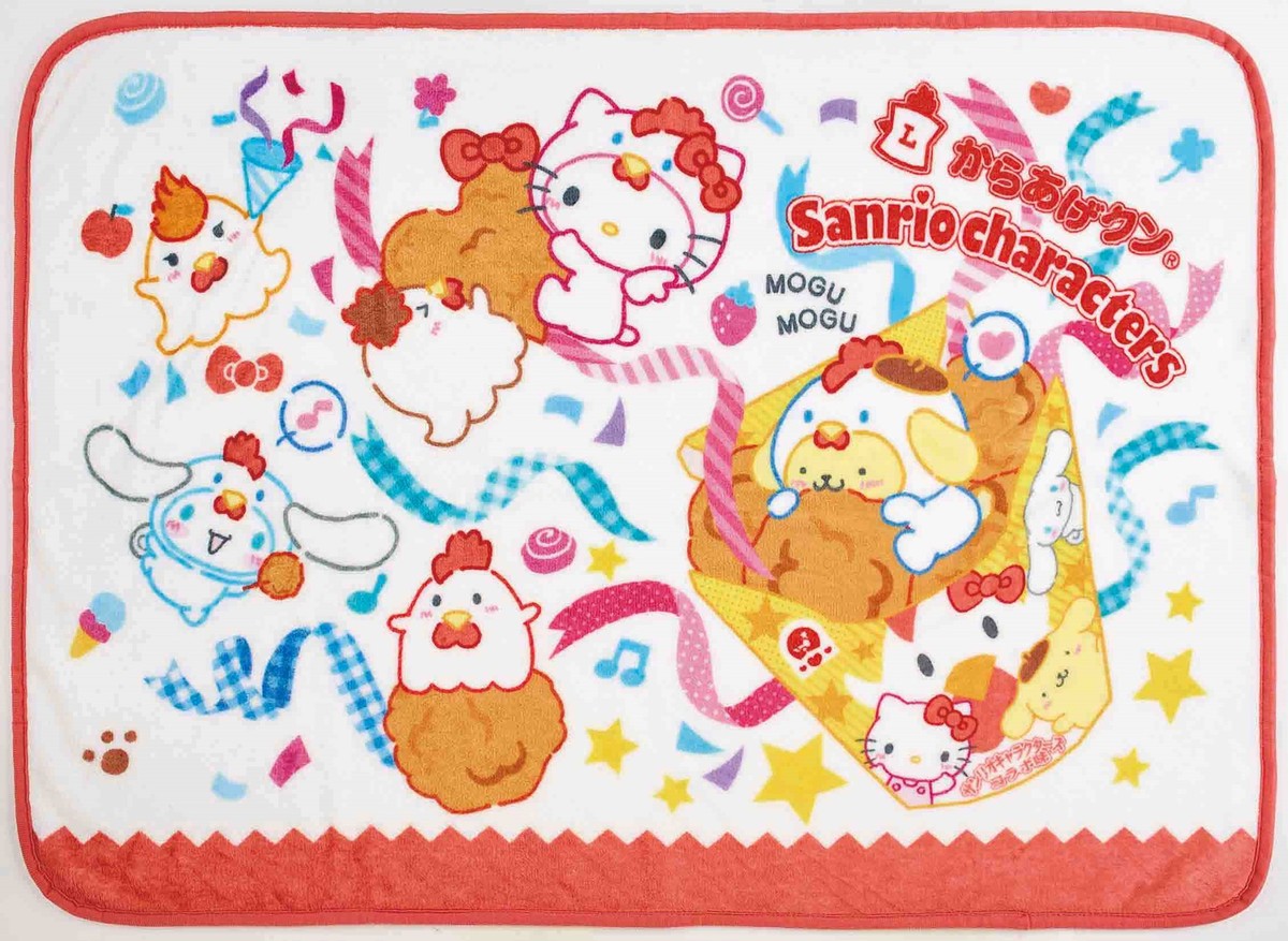 サンリオキャラクターズと「からあげクン」のコラボアートが使われたブランケット。