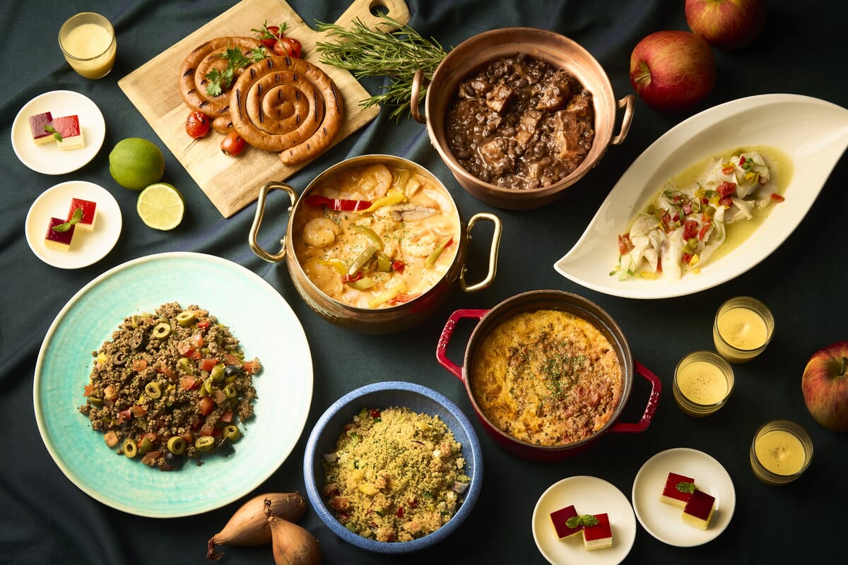 ペルーの魚介マリネ料理「セビーチェ」やブラジルの豆と肉の煮込料理「フェジョアーダ」など、12月から1月にかけて夏を迎える南半球から、8ヵ国の代表的な料理がフルブッフェスタイルで楽しめます。