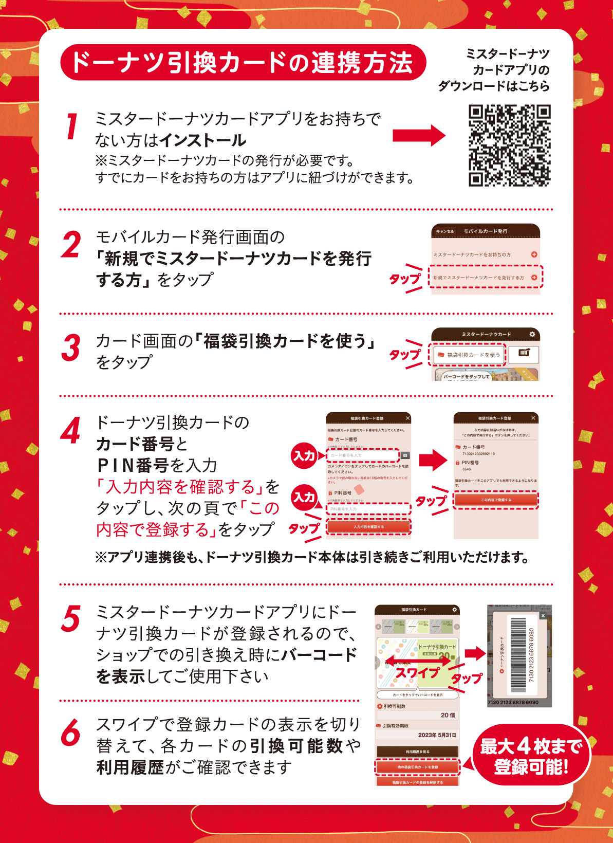 ミスタードーナツカードアプリとミスド福袋2024ドーナツ引換カード連携方法