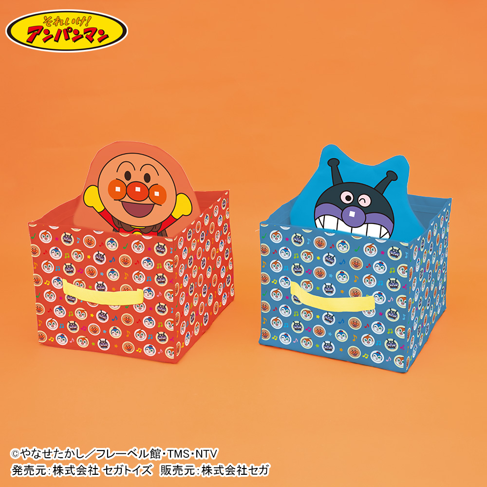 中の仕切りが取り外し可能な、「アンパンマン」と「ばいきんまん」のかわいい収納ケース。